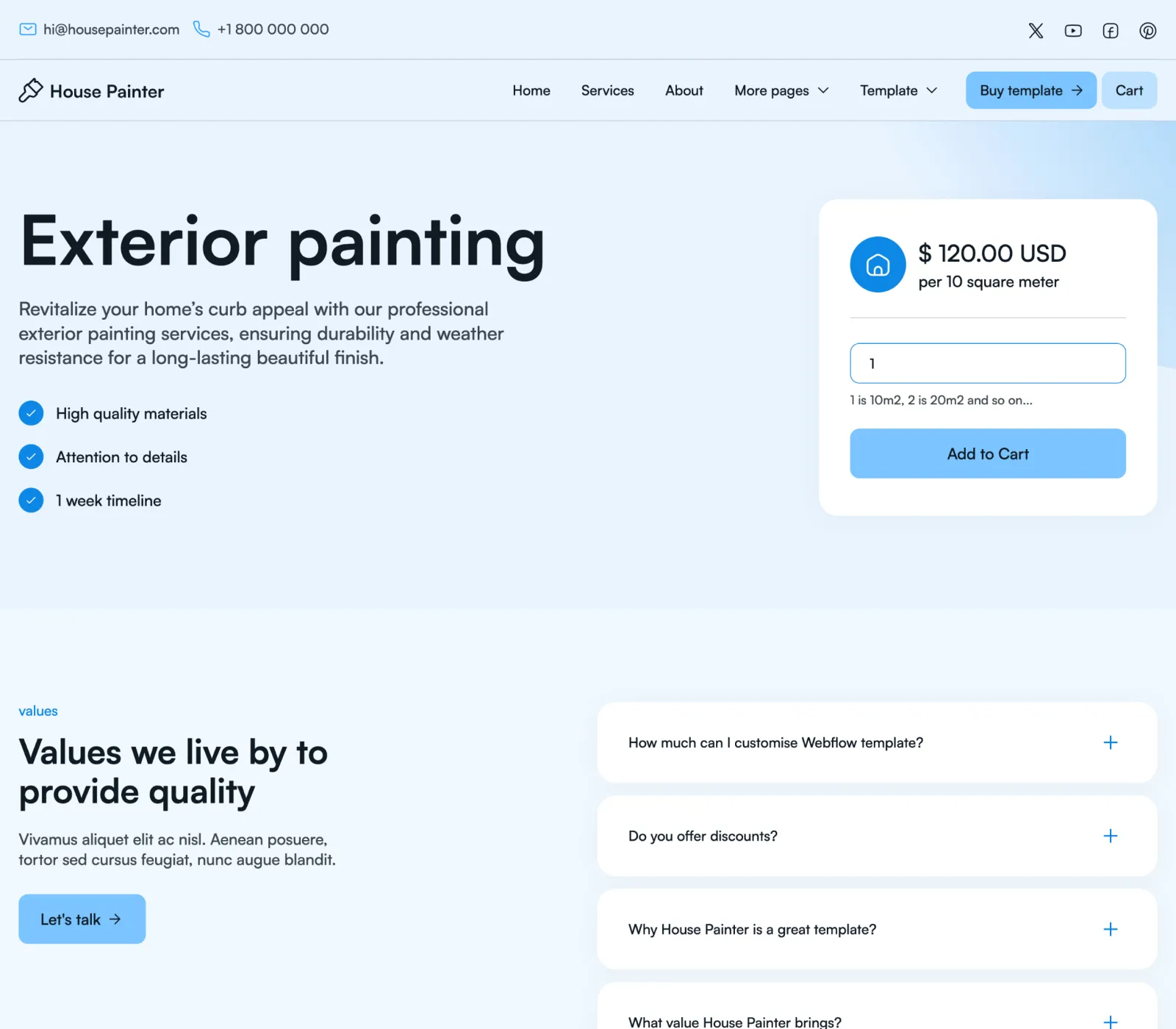House Painter Webflow Template comes with eCommerce set up, so you can start selling your services straight away.